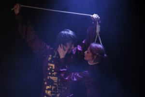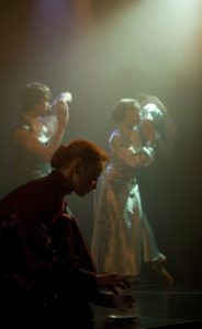 Although we label this performance as dance theatre ( horror ), it is more of a synthetic theatre. Even though, its dominant component remains modern expressive ballet with all its attributes - dancing on "tiptoe", combination of classical dance techniques with modern techniques..- all this in a form typical for UMB (minimal space, number of dancers, minimal music...).