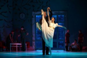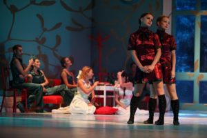 Well, it's not so much a "classic"...with 14 people on stage...? It's more of a Nutcracker. It's also subtitled, "A child's dream for our age. It's set in the present. Uncle Drosselmayer is also the host of Clara's Dreams. Clara is truly a dreamer. She is delighted when she finds a wooden toy under a tree, while her peers are delighted with laptops, mobile phones and "empétrojes". Clara's parents then get a new plasma TV. When Clara falls asleep she has the power to turn all the negative news from around the world that her parents watch into magical dances of nations. And so live dancers emerge from the huge "plasma" with projections, and Clara herself becomes a real ballerina, Marie, and dances a - now really "classic" - pas de deux with her Nutcracker.